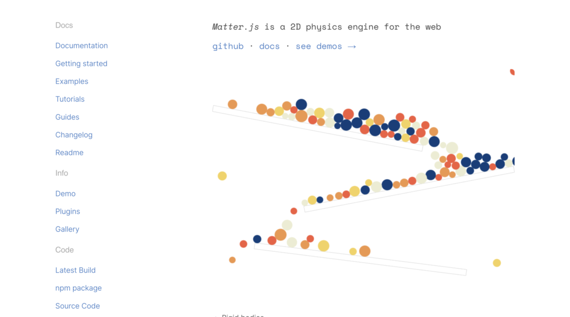 In addition to that, I’ve recently been introduced to Matter.js at work by my mentor, and I have to say—it’s been a lot of fun to experiment with. Matter.js is a 2D physics engine for the web that allows you to simulate real-world physical interactions, like gravity, collisions, and forces, within a canvas element. What I find particularly exciting about it is the ease with which you can create interactive simulations, such as bouncing objects, draggable items, or even simple games, all while leveraging realistic physics. I’m looking forward to experimenting more with Matter.js to see what kind of creative, physics-driven interactions I can integrate into my project for a more engaging experience.