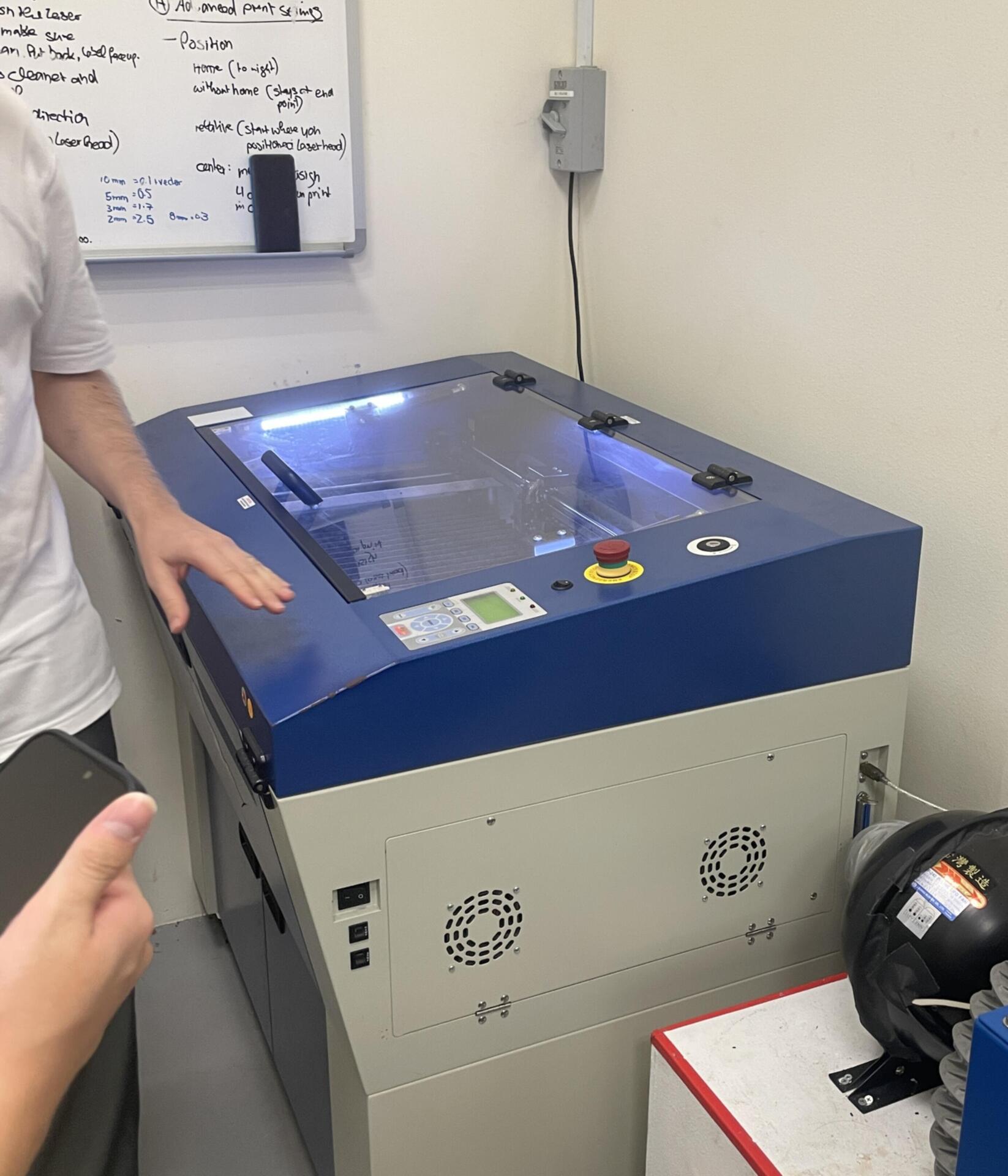 Alongside the technical details, we received important safety instructions to follow while operating the machine. To get some hands-on experience, each of us took turns cutting a small square from a spare piece of acrylic, testing out different speeds and settings. It was exciting to see how effortlessly the laser moved across the material, creating precise cuts within seconds. The session gave me a better understanding of how laser cutting could be a valuable tool in prototyping and fabrication, and even though I don’t have an immediate use for it in my project, I’m glad I took the time to learn it. Having access to this technology opens up possibilities for creating intricate and well-fitted components in future builds.