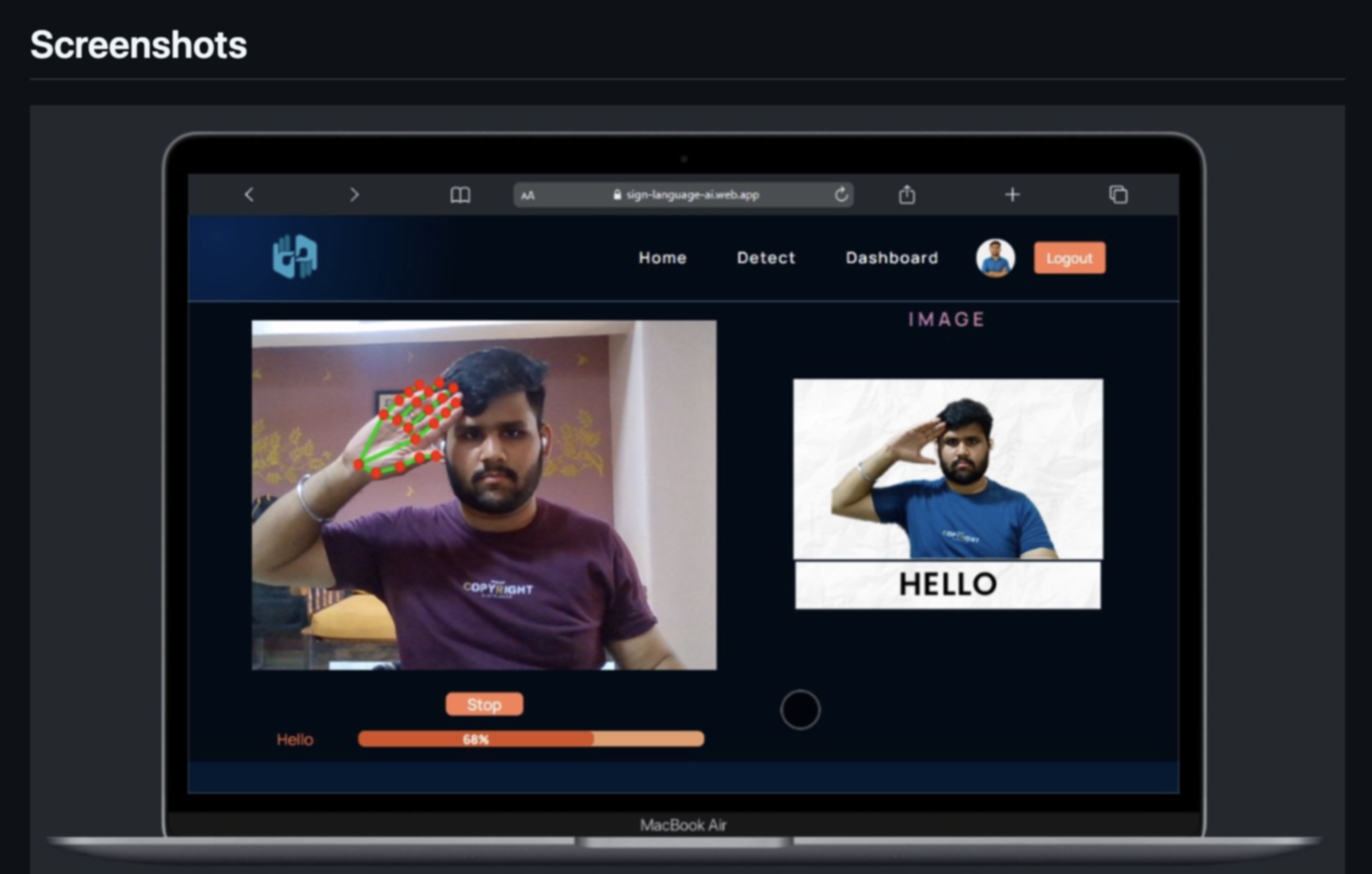 With the coordinate system in place, I wanted to try something more advanced: actual ASL letter detection. I found a pretrained model on GitHub that used a CNN trained on images of hand signs representing the 26 letters of the ASL alphabet. I integrated the model into my Python script and modified the MediaPipe code to pass hand region images into the model in real time. This required resizing and preprocessing the frame before passing it through the network, but once it was set up, it could classify the live hand pose into a predicted letter. Every few milliseconds, the terminal would print out something like “Detected: L” or “Detected: S,” depending on my hand shape. It wasn’t perfect, but it worked surprisingly well with good lighting and hand alignment.