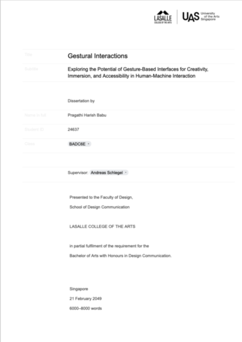 The past week has been consumed almost entirely by the finishing touches on my 8,000-word dissertation. After weeks of writing in sprints, compiling sources, and laying down the structure, I finally arrived at the phase I had been both anticipating and dreading: the edit. The discussion section needed serious attention—not in length, but in focus. During the first few drafts, I had packed it with technical breakdowns of experiments that, in hindsight, didn’t directly feed into my core research question. So I made the call to trim those and highlight the experiments that were most aligned with my goals around gesture-driven interaction and sign language learning. Experiments like handInHand() and the AI-generated storytelling prototype felt much more relevant and resonant, and deserved to be foregrounded in the discussion. Editing that section felt like a necessary act of clarity—shaping the work to reflect what I truly cared about.